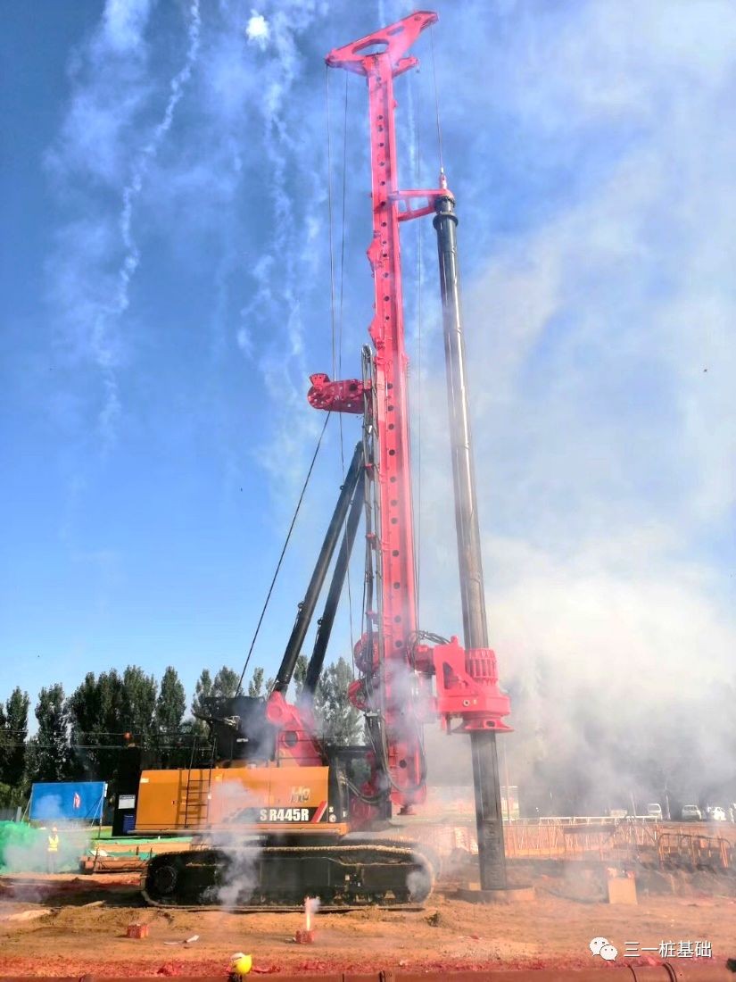 由于客户为三一优质VIP客户,且SR445R机型首次亮相北方工地,因此北京三一智造科技研究院提供了全方位的技术支持,并派驻研发、工法、售后等相关技术人员现场跟踪护航。工法工程师针对现场的地质特点进行钻具、钻齿、操作和设备控制技术等多方位技术指导,客户同时展现出其高水平的管理,全力配合施工,从而实现水孔整体入岩取芯、泥浆护壁无塌孔、成桩质量无缺陷。三一SR445R最快10小时成孔,平均一天多一根桩,每天可施工近100m,其高效的施工效率得到丹河项目部高度认可。