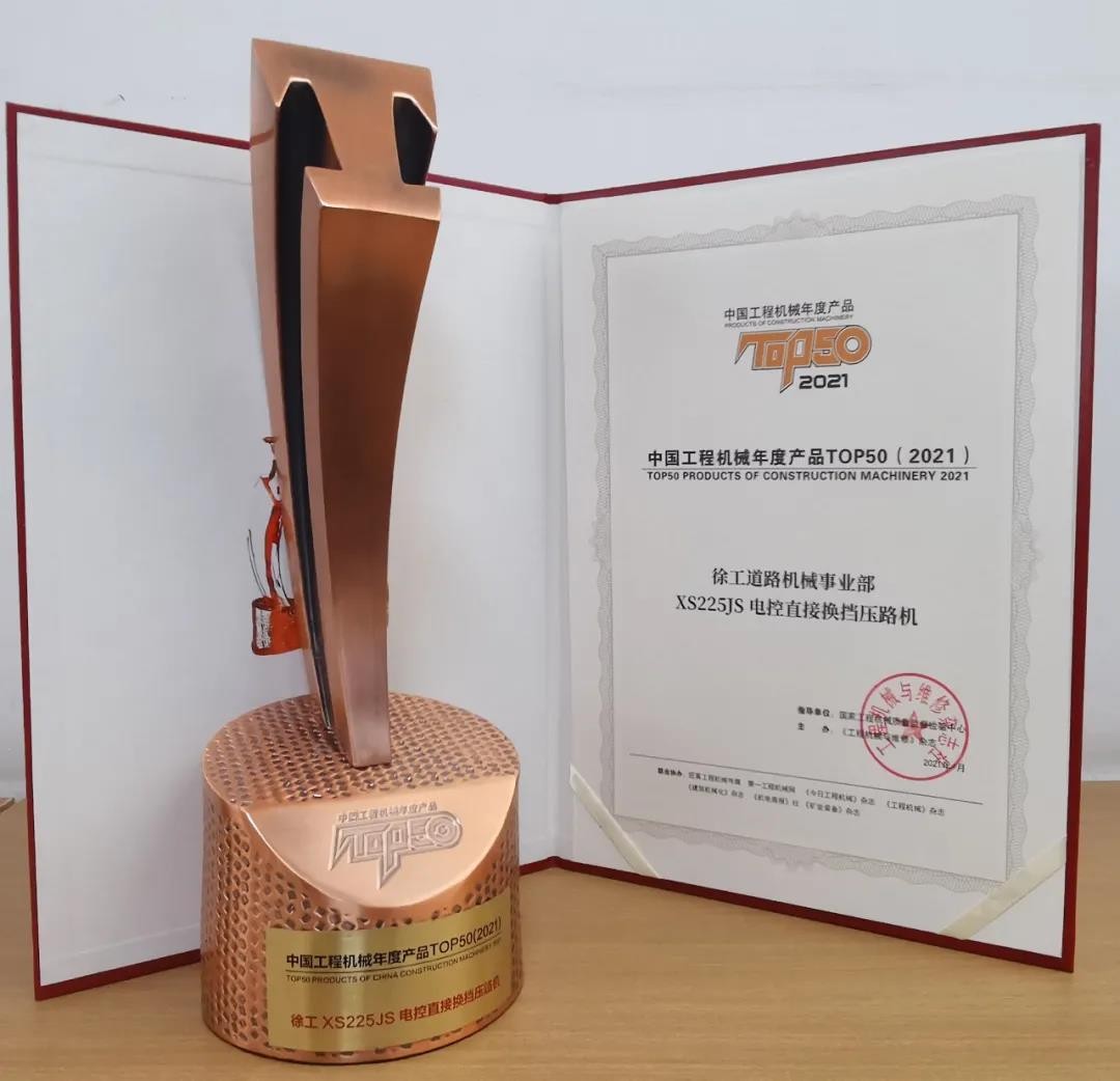 徐工XS225JS电控直接换挡压路机荣获中国工程机械年度产品TOP50(2021)